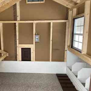 On the morning of the 27th, a Mr. Stolzfus arrived with a long tractor trailer with the coop and a Mule (a motorized device on wheels) that could lift and pull the coop along the path we had shoveled. It was quite exciting when the coop almost tipped over as the Mule rounded the corner of the house! Fortunately Mr. Stolzfus had a jack and his expertise to negotiate and set the coop on the pad that Chuck had leveled and cleared in the back yard. It was an adventure!